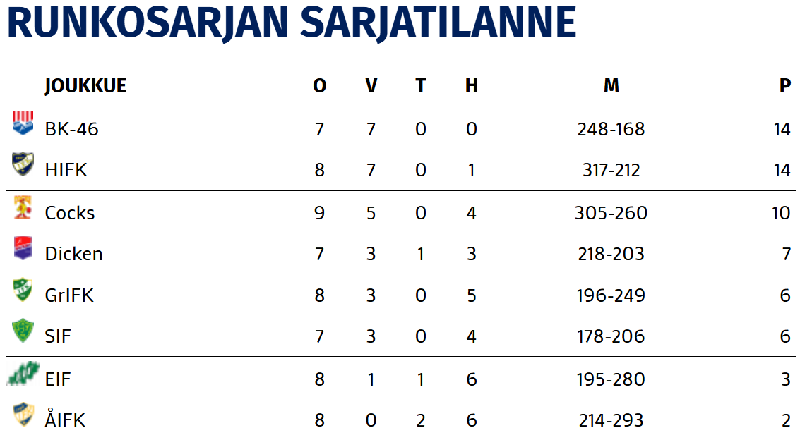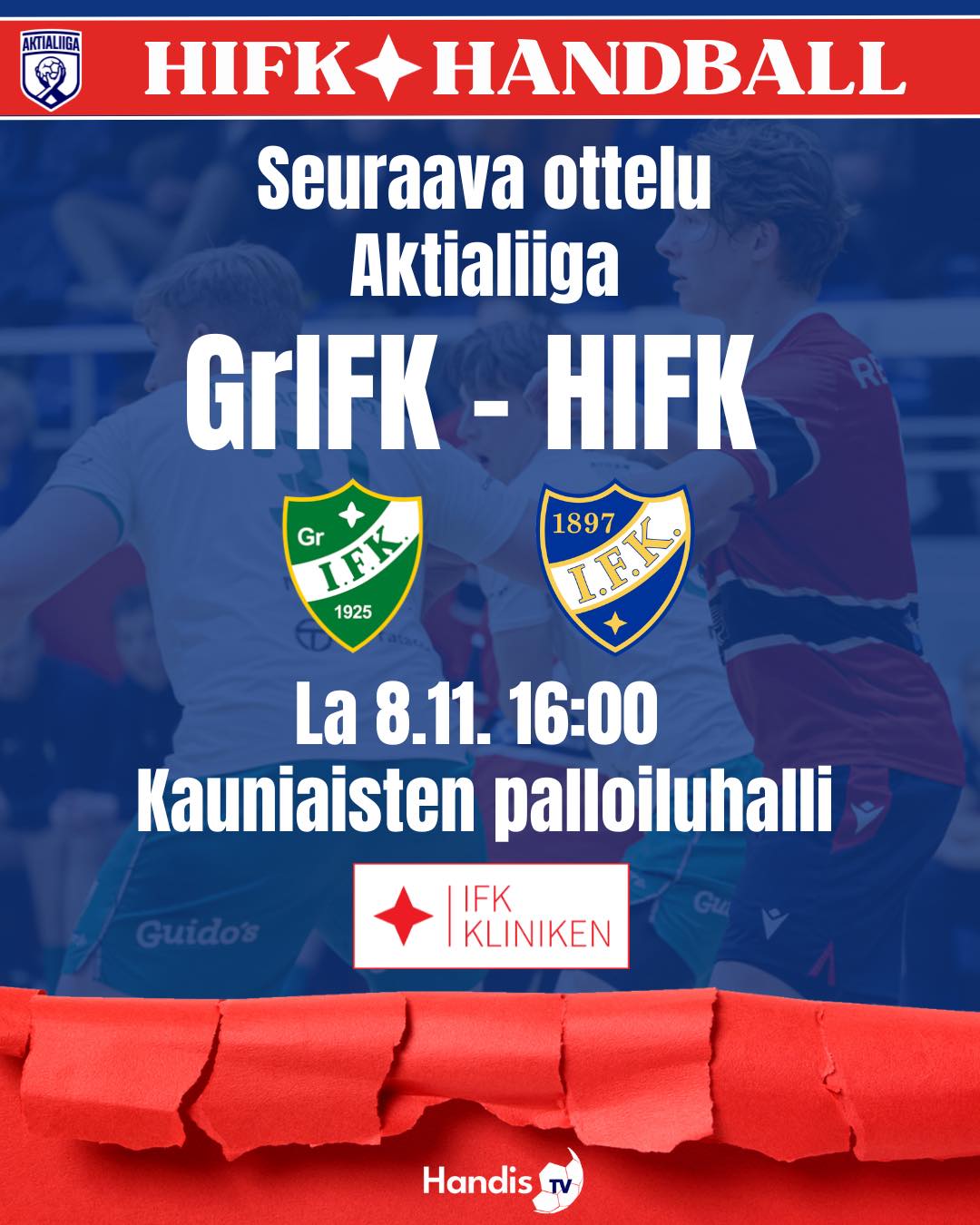 Lauantaina kentältä löytyy IFK:t molemmista päädyistä, kun tällä kertaa Grankulla isännöi Helsingforsia. Viime kevään pronssipettymyksestä saatiin osa kuitattua ensimmäisessä kohtaamisessa Kalliossa, kun HIFK tinttasi 19 maalin kotivoiton 44-25. Ehkä jotain sanottavaa on jäljellä vielä tähänkin matsiin, sillä joukkueiden syyskausi on mennyt kovin erilaisissa merkeissä. HIFK on pelannut kaikkien aikojen sarja-aloituksen, kun 8 pelistä tuloksena on 7 murskavoittoa ja yksi niukka vierastappio BK-46:lle. Isoja menetyksiä kokoonpanoonsa kärsinyt Grankulla IFK on kohdannut odotettuja vaikeuksia, sillä voittoja on vasta kolme viiden tappion lisäksi.