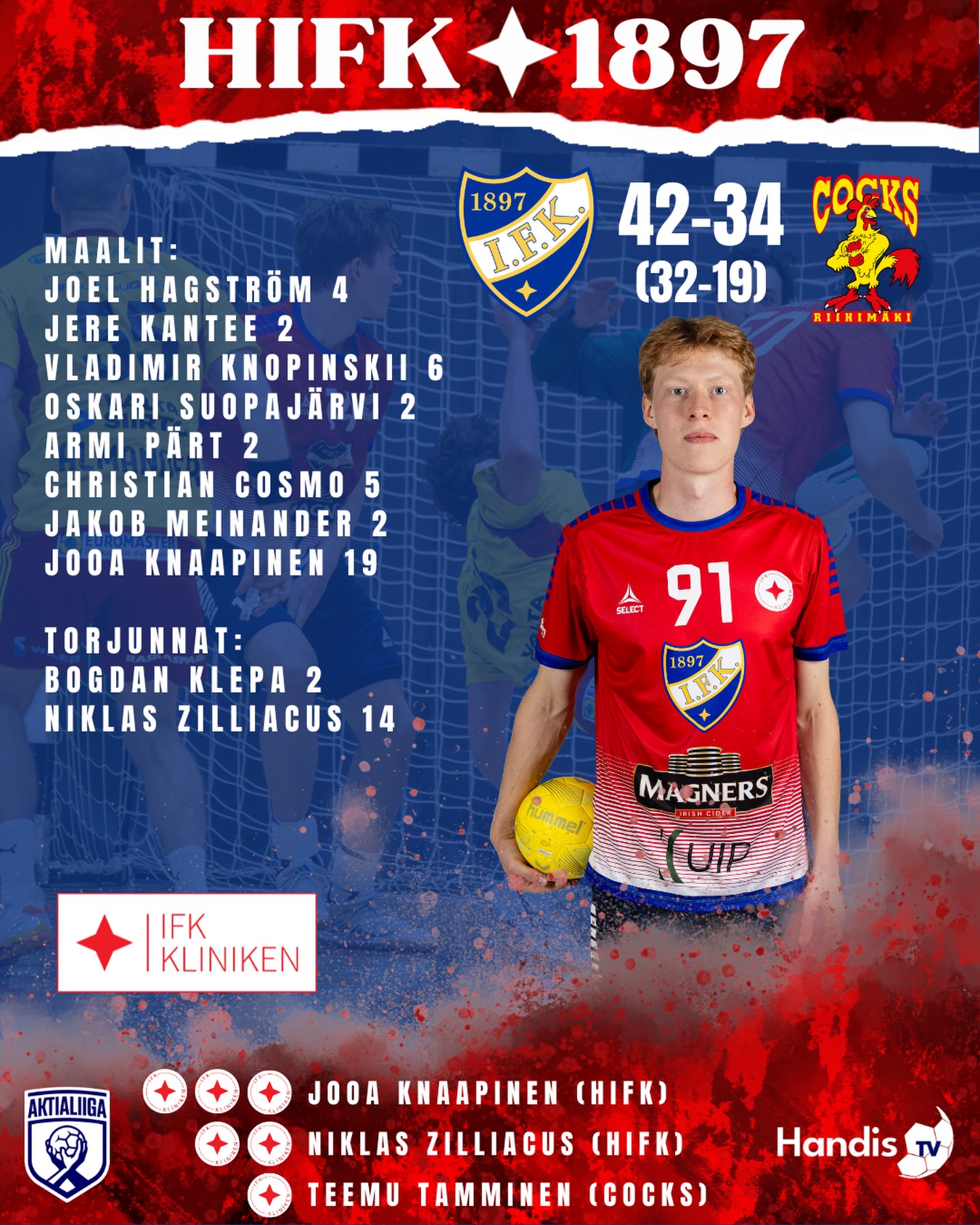 HIFK – Cocks 42 – 34 (32-19)