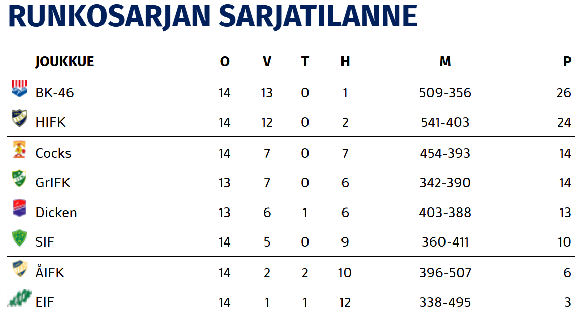 Seitsemän peräkkäisen kotivoiton jälkeen HIFK kohtasi Kalliossa Aktialiigan viimeisen tappiottoman joukkueen. BK-46 oli kauden 13 ensimmäistä otteluaan kulkenut voitosta voittoon, päihittäen kotikentällään Karjaalla IFK:n maalein 37-34 ensimmäisen kierroksen kohtaamisessa.