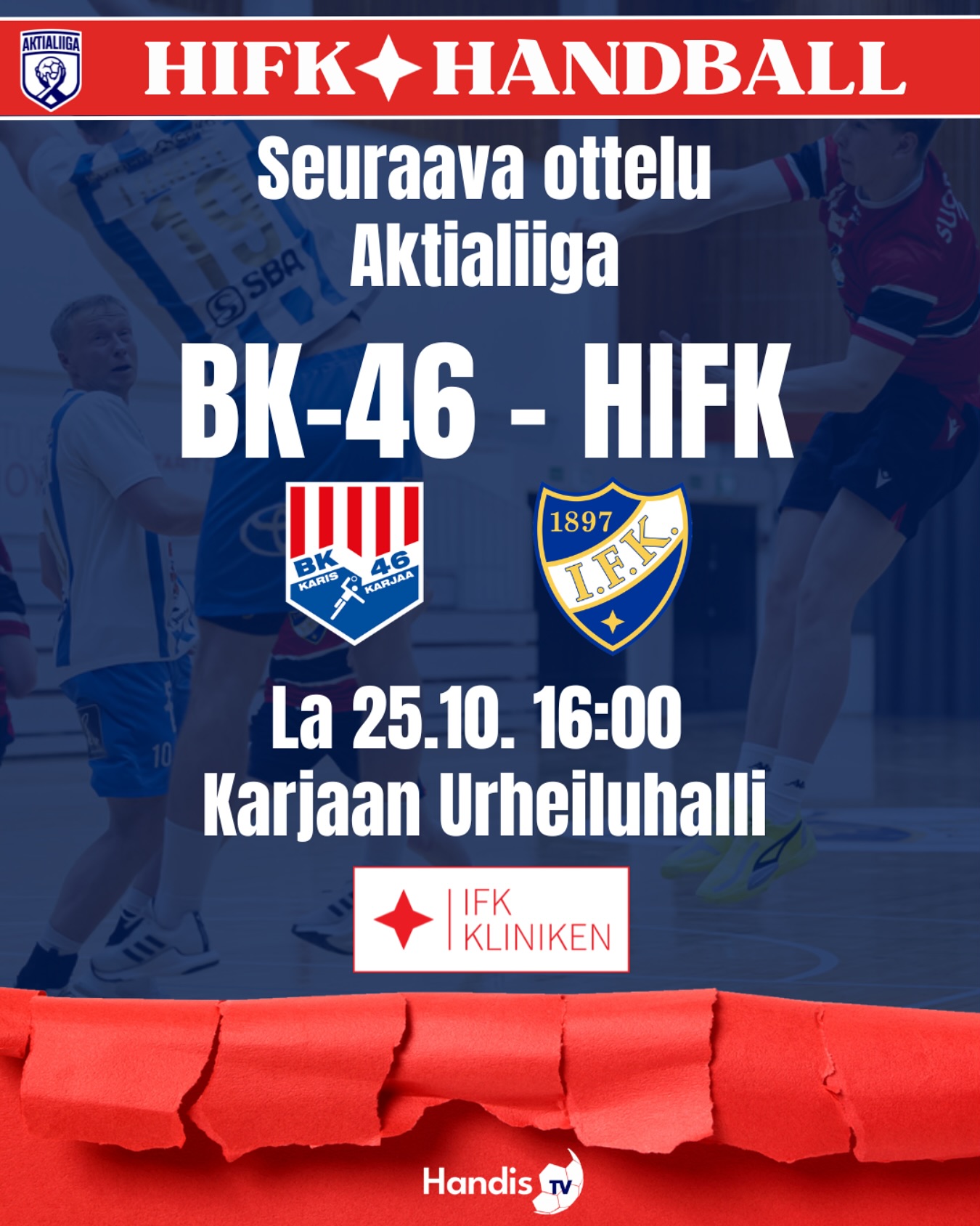 Upean syksyn odotetuin näytös odottaa tämän viikon lauantaina Karjaalla, kun Aktialiigan ainoat tappiottomat joukkueet kohtaavat toisensa. HIFK:n virheetön syyskausi sisältää kahden Cup-voiton lisäksi puhtaan kuuden ottelun voittoputken kaikista muista vastustajista. Myös BK-46 on selvinnyt tänne asti ilman tappioita, mutta EHF Cup-otteluidensa takia karjaalaiset ovat pelanneet vasta viisi ottelua. Kauden alussa BK-46 voitti GrIFK-, SIF-, Cocks- ja Åbo-pelinsä selvästi vähintään 11 maalin erolla, mutta tämän viikon tiistaina vierasmatsi Dickeniä vastaan ratkesi vasta viimeisellä vartilla 7 maalin voitoksi.