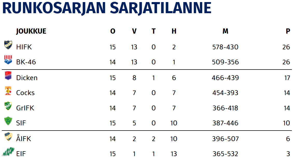 Kolmannen sarjakierroksen aluksi HIFK saavutti jo kauden 13. voittonsa 15 pelin jälkeen. Onnenluku nosti IFK:n 26 pisteeseen sarjataulukon ykköseksi edes yhden yön ajaksi, kunnes BK-46 pelaa rästipelinsä Grankulla IFK:ta vastaan keskiviikkona. Syyskauden upeat tulokset mitataan loppuun vielä perjantain viimeisessä kotimatsissa, kun Kallioon saapuu syksyn vaikein vastus GrIFK. Kaikki paikalle tueksi vuoden viimeiseen liigaotteluun!