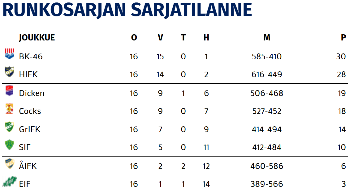 HIFK aloittaa vuoden 2026 liigapelit kahden ottelun viikolla, kun keskiviikkona ajetaan vieraspeliin Siuntiossa ja perjantaina avataan vuoden kotimatsit Åbo IFK:ta vastaan. Vuosi vaihtui iloisesti sarjataulukon kakkospaikalla, HIFK:n hävittyä koko syksynä vain kaksi ottelua BK-46:tta ja GrIFK:ta vastaan. Eroa liigaa johtavaan BK:hon on ainoastaan kaksi sarjapistettä, eli kevätkauden panoksena on vähimmillään suora paikka välieriin ja hyvillä tuloksilla HIFK kamppailee jopa runkosarjan voitosta.